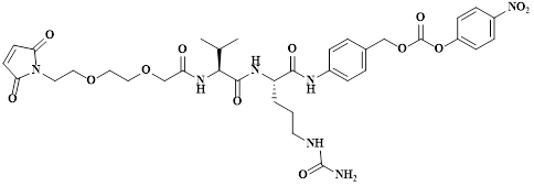 | Product Name: | L-Ornithinamide, N-[2-[2-[2-(2,5-dihydro-2,5-dioxo-1H-pyrrol-1-yl)ethoxy]ethoxy]acetyl]-L-valyl-N5-(aminocarbonyl)-N-[4-[[[(4-nitrophenoxy)carbonyl]oxy]methyl]phenyl]- |